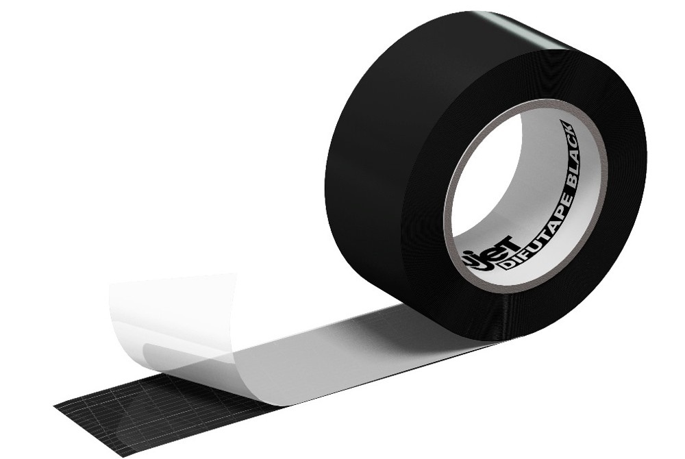 The ALUJET Difutape BLACK is designed to create an excellent adhesive bond on all surfaces from smooth (e.g. foils) to slightly rough (e.g. fleece, wood)