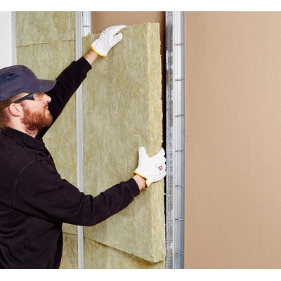 Formstabile Steinwolle-Dämmplatte zur Schall- und Wärmedämmung von leichten Trennwänden, auch mit Brandschutzanforderungen.
