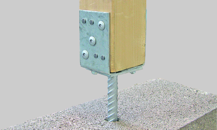 Beim verstellbaren Stützenschuh wird mit die Riffeldolle einbetoniert.