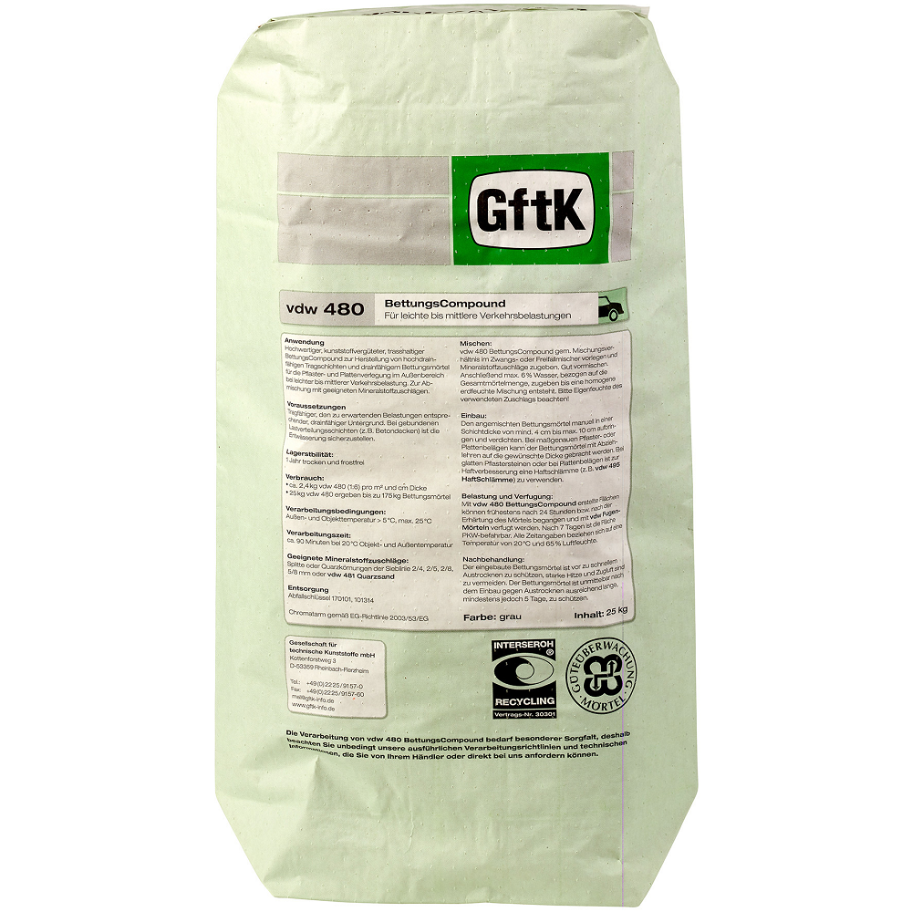 Gftk vdw 480 Bettungscompound zementgrau 25kg