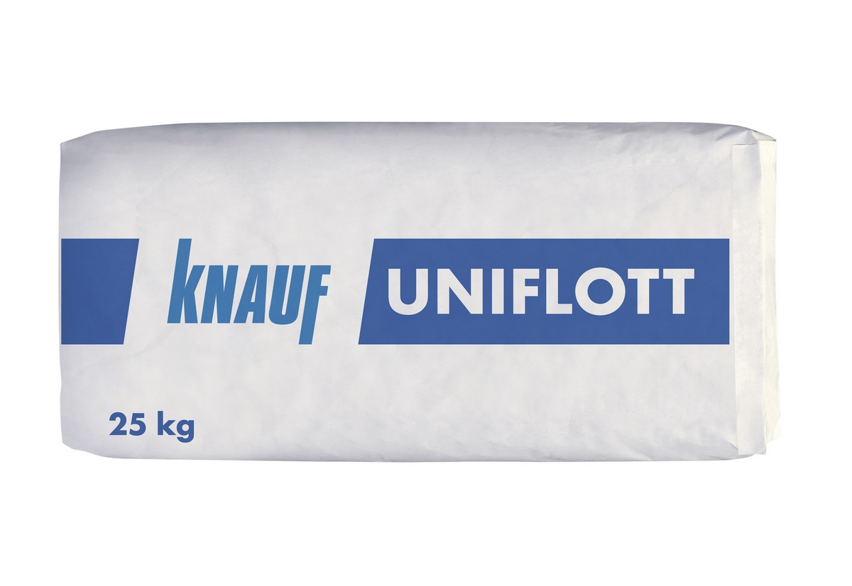 Knauf Uniflott ist ein auf Spezialgipsbasis aufgebautes, kunststoffvergütetes, durch Zusätze auf seine Anwendungsbereiche abgestimmtes, pulverförmiges Spachtelmaterial