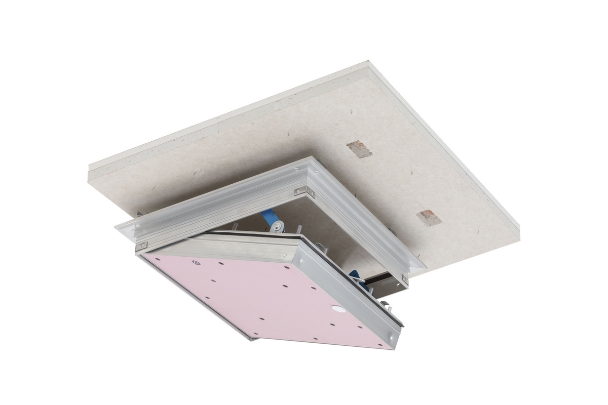 • Für Montage in abgehängte und freitragende F/EI90 Brandschutzunterdecken, mit umlaufender Lippendichtung, Gipskartoneinlage mit verdeckten Schnappverschlüssen und Fangarmen