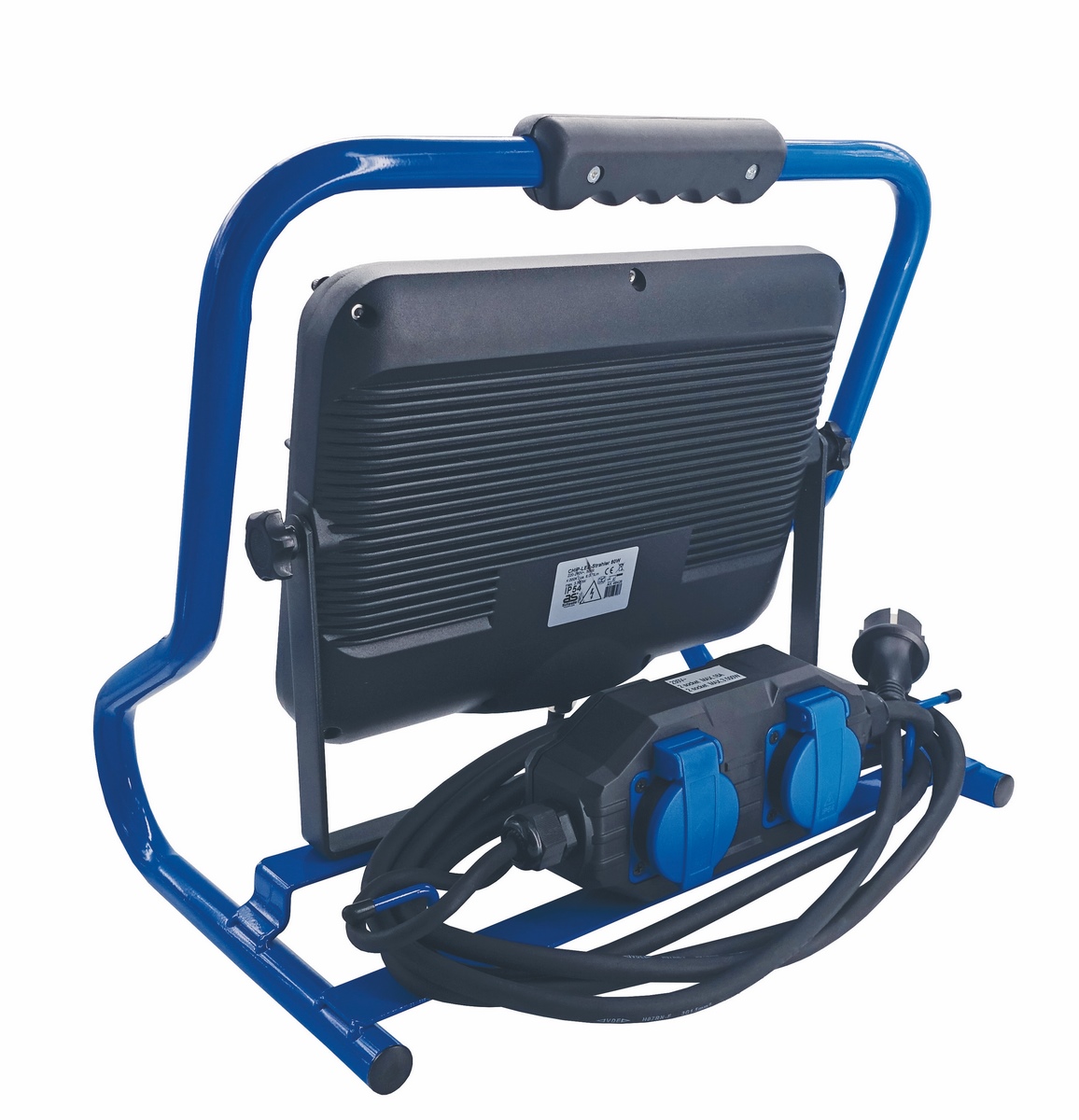 Ausstattung: ergonomischer Kunststoffgriff, Verstellschraube mit Sterngriff, 2 Schutzkontaktsteckdosen mit Klappdeckeln auf der Rückseite