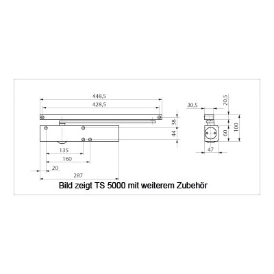 Samozamykacz GEZE rozmiar TS 5000. 2-6 srebrny bez szyny ślizgowej